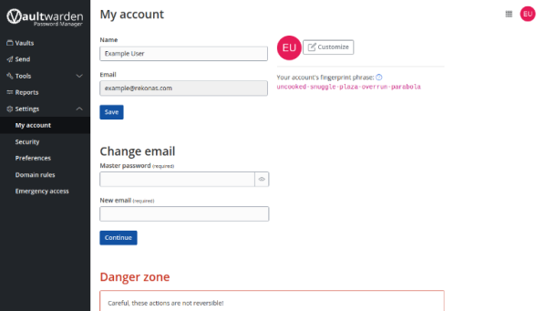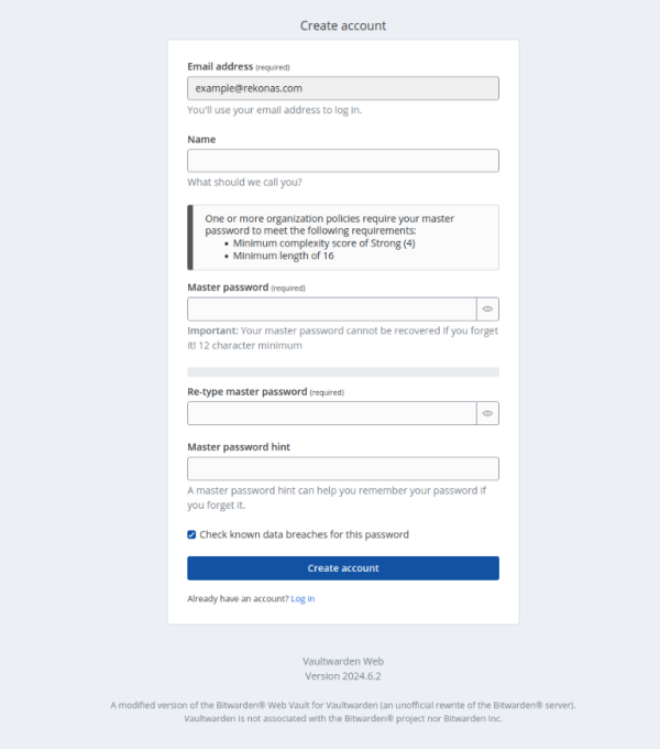 However, we are not using any services from Bitwarden Inc. and you will never have to enter your details on the Bitwarden website. Our service will always be available under our own domain: https://pw.rekonas.com .